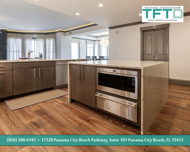 1 Water Place, South Walton County, was a 2017 project of ours that stands out for having wonderful natural materials in a modern and clean space that is completely beautiful. Both elegant and purposeful for entertaining a large gathering of friends or the fun laughter of a family working on a project together.