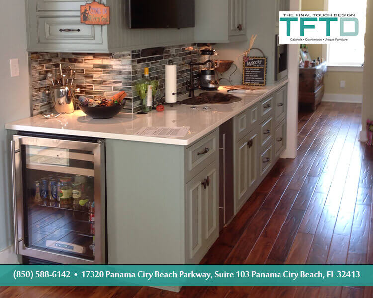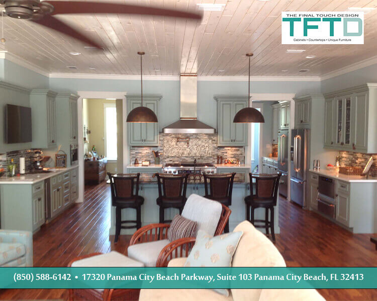 30A with a View was a fun 2013 remodel project that transformed multiple living spaces with cozy comforts that welcome you to settle in; you’re home now. Heart-friendly places for family to share and build and grow. A sentimental design with every modern convenience. This is a very sophisticated turn on a classic kitchen in both design and layout.