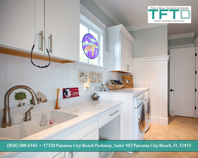 Laundry rooms are another area of the house that we specialize in. Any layout. Any size. We can make it wonderful for you and your family, just as we have with this residence. The cabinets have lots to love beyond the beautiful design since they also function beautifully. It’s what we do at The Final Touch Design.