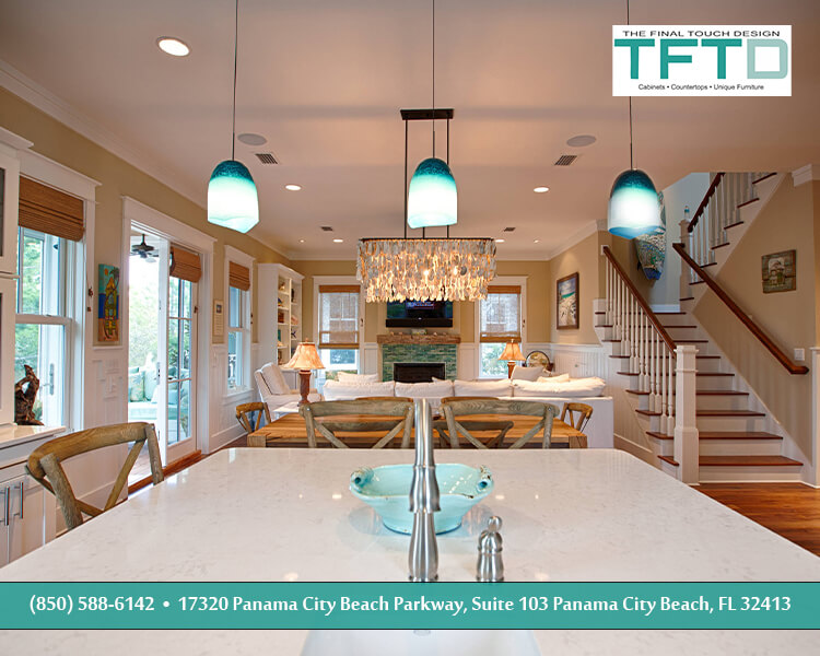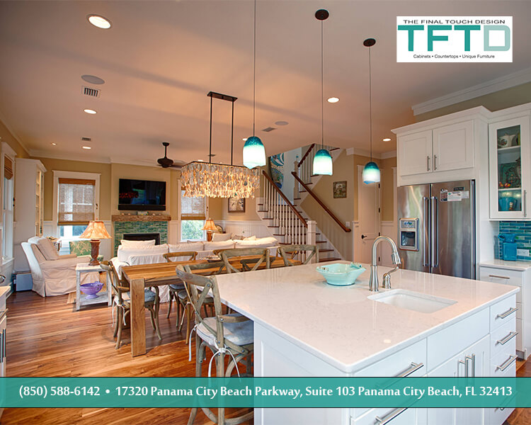 Watersound Crossings is a coastal community and this project reflects coastal living perfectly. Clean and crisp; a splash of beachy fun without leaning too far into it. Family living is no problem with this kitchen layout. Everything has a place to be whether in use or in storage.